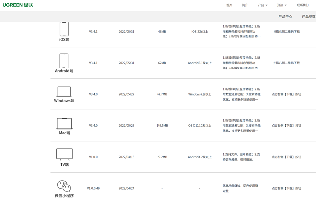 目前绿联云客户端提供了ios、安卓、windows、mac、tv以及微信小程序等版本,基本覆盖了绝大部分的设备类型。