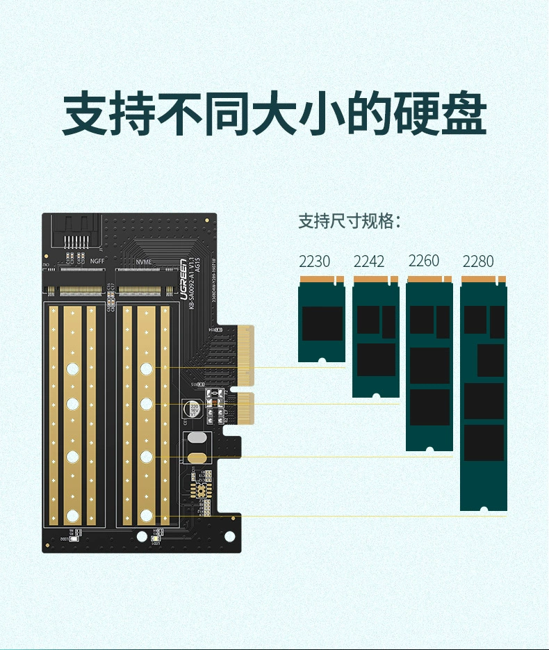 绿联m.2转接卡,pci-e转m.2双盘位转接卡,升级电脑 刻不容缓。